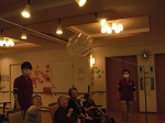 新聞ひらひらゲームはAチームの勝利となりBチームには恒例のサイコロを投げて出た数字の罰ゲームをおこなっていただきました。その後、初の🎈バレーをおこなっていただきボールが一つから始まり二つになり最後は三つになりどこから風船が飛んでくるか?思わず足で蹴る方や顔で受ける方もいて大笑いの連続でした。