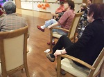 まずは軽いストレッチから初めて椅子に座りながら手と足を動かしおこなっていくうちに身体もほんわか温かくなり気分もすっきり!歌は歌集を見ながら皆で合唱。身体を使い声を出して良い運動になったようです。