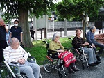 木陰では十分に風が感じられて気持ちが良かったです。ウトウトと気持よさそうに目を閉じ風を感じているご入居者様!鳩を眺めながら会話されているご入居者様!長い時間ではなかったですが皆様のさわやかな笑顔が印象的でした!