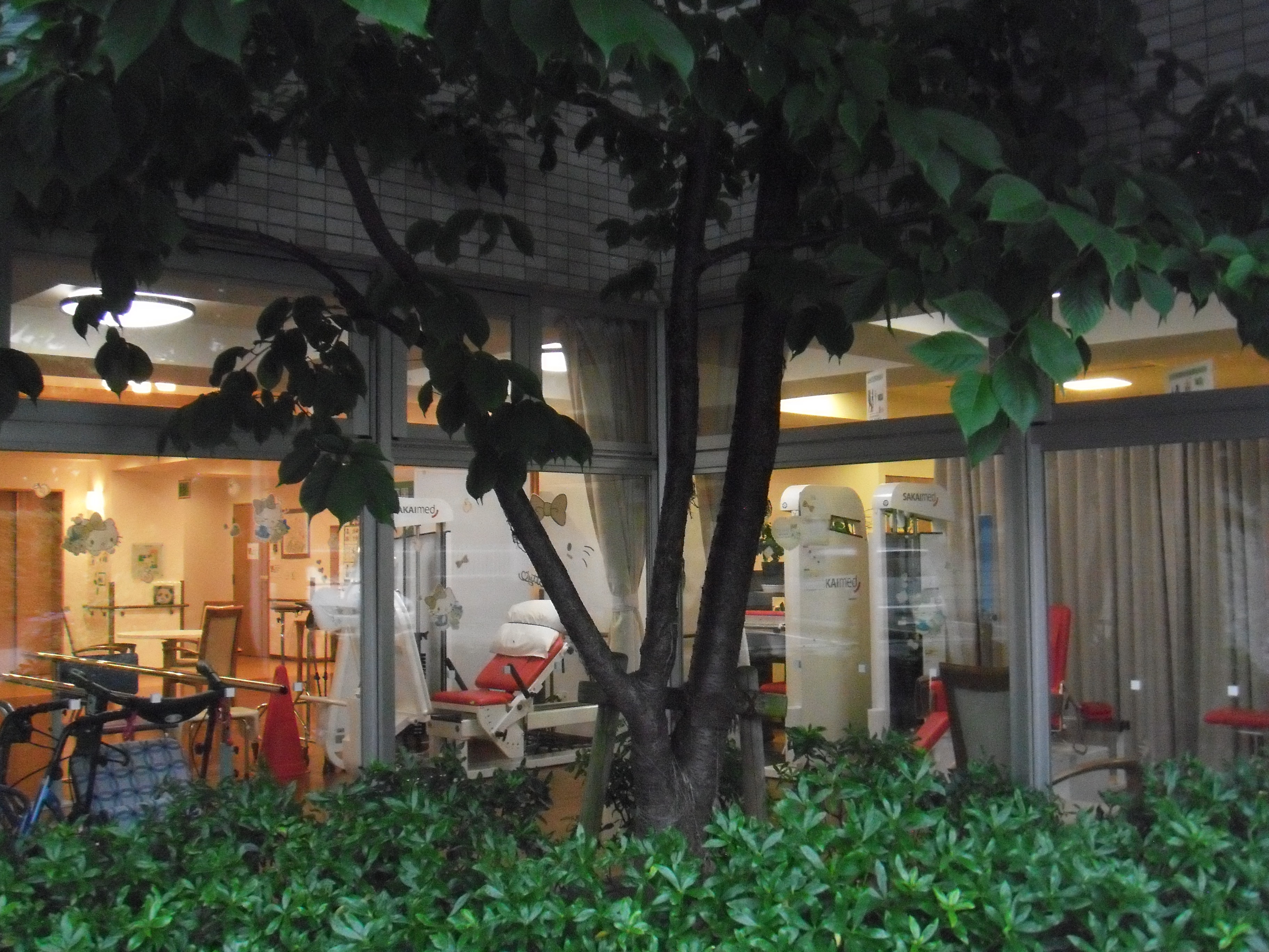 私はこの時期のリハビリコーナーが好きで外からも中からも鮮やかな緑の木々が眺められリハビリを行いながらご入居者様も眺めています!緑のある環境の中でのリハビリはより一層頑張れる感じです。環境も大事ですね!