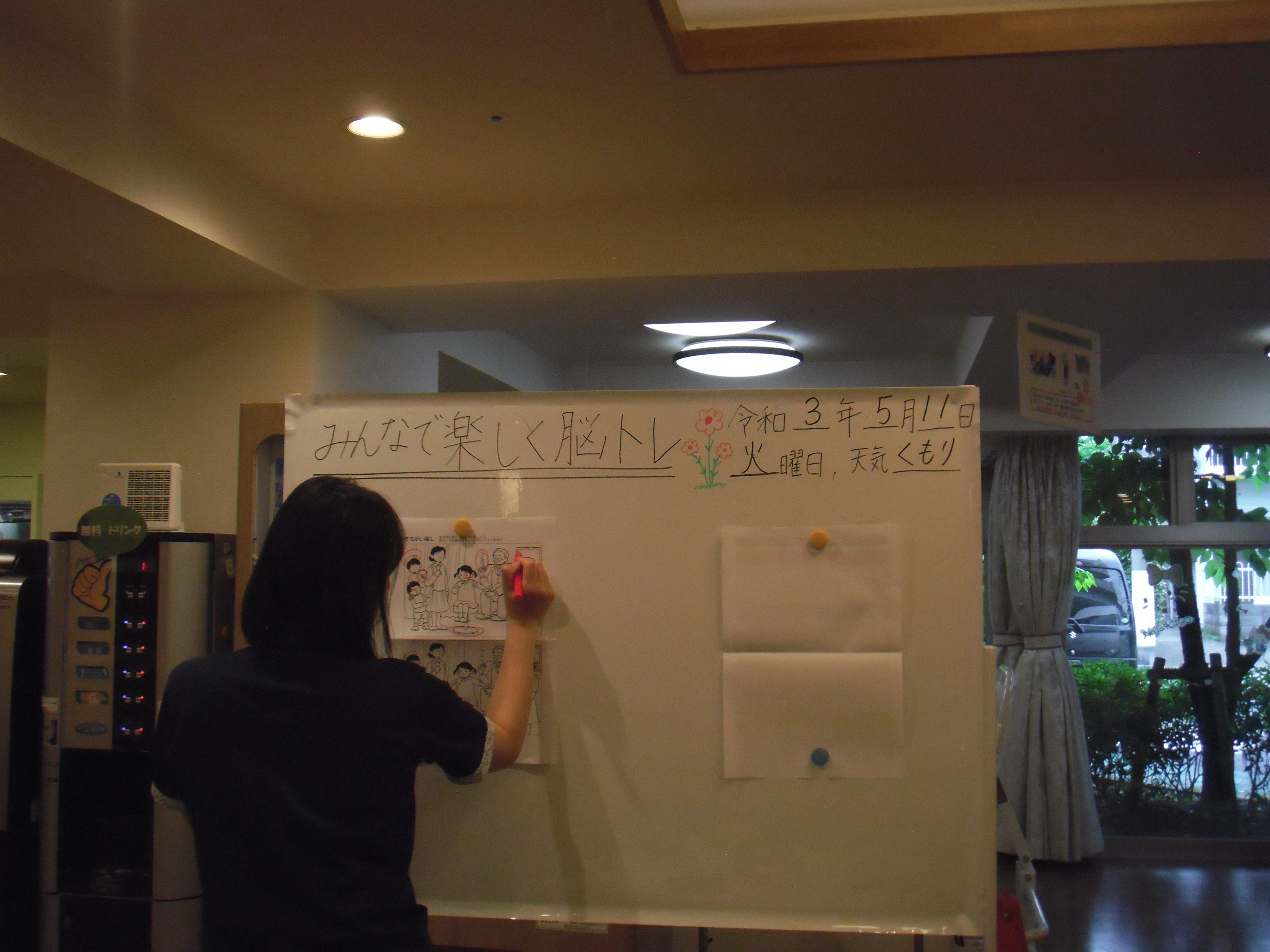 今日は10時から月1回の機能訓練指導員による脳トレの日!