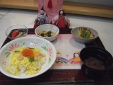 午前中は各フロワーを周り雛祭り用のボードに顔を入れていただきお写真をパチリ!素敵なお雛様とお内裏様が誕生しました。昼食は雛ちらしを美味しく召し上がっていただき午後はお雛様の壁掛けを作成しました!こちらも可愛く完成しました。最後に「今日は楽しい雛祭り~」を唄って・・・おやつに桜餅をいただき今年の雛祭りも楽しく過ごす事ができました!