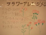機能訓練指導員がホワイトボードにお花の名前と絵を描いてくださりお花の説明をさせていただいてから開始となりました。お花の事がわかってからのアレンジは力が入っているようでした。スイトピーやスプレーバラとか可愛い感じのお花が沢山で今日も皆様、可愛いアレンジが出来上がりました。