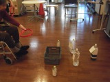 点数のついたペットボトルの中に輪を投げ入れて合計点数を競う個人戦です。最高得点は200点!だけどこのペットボトルは小さくて中々入りませんがいきなり200点に輪が入った女性入居者様!ご本人様より周りの方々が「あぁ~入った」とびっくり!最終的に勝利しました。今日も楽しい時間が過ごせたようです。