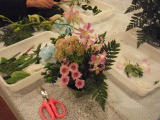 涼しげなお花に囲まれて楽しそうに皆様、活けていました。今回はブルーのカーネーションがアクセントになっていて引き立っています。
