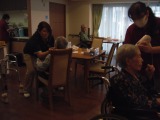 午前中から女性ご入居者様にはお化粧とドライヤーをかけて髪を整えて男性ご入居者様は髭そりをしてお一人づつ写真を撮り皆様、とても良い表情で素敵なショットが撮影できました。昼食はお祭りメニューで厨房さんに頑張っていただき焼きそば、フランクフルト、お好み焼き、唐揚げたこ焼きを味わっていただきメニューも豊富で喜んでいただけたようです。例年と違うのが午後からです。密を避けなければいけないので各フロワー別に順番に1階へ来ていただきかき氷を食べながら大きなスクリーンで花火のDVDを鑑賞していただきました。例年に比べると盆踊りをしたり大きな声で笑いあったりと賑やかではなかったですが担当スタッフも頑張ってくれました。ご入居者様も花火の映像に感激してくださり「有難う、夏気分が味わえた」とのお言葉をいただきほっとしました。映像を観ながら涙しているご入居者様が居て花火で感動しているのかと思ったらそうでなくて「こういう行事を皆がどうしたら楽しんでくれるか考えながら進めているスタッフさんの事を考えてたら涙が出てきて」と有難いお言葉までいただきました。後は皆様の写真の出来上がりを楽しみに待つばかりです!