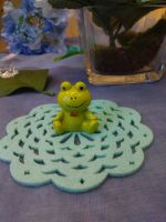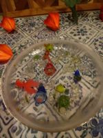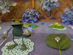 「取っておいてくれたの」と喜ばれていましたが勿論です。とても細かくて池でオタマジャクシが泳いでいるのもわかります。カエル🐸さんも折り紙で作ってあります。その他可愛いカエルさんや金魚さんも水の中で泳いでいます。