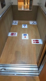 エレベーターの中はどうしても密になってしまうので足のマークを