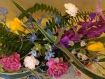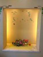 今回のテーマは「絡まる」という事でよく見てみると葉が他の葉やお花に絡まってアレンジしてあります。今回もご入居者様、ご家族様に好評です。