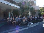 ご入居者様と外で待機!風は強めですが久々の皆でとの