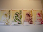 種類はフレンチバニラ、ストロベリー(果肉入り)北海道小豆、