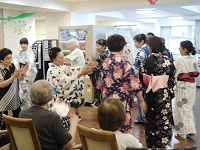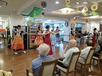 フラダンスでは、先生の優雅な踊りを楽しみ、盆踊りではお馴染みの音頭をみんなで踊り、屋台ではかき氷や綿飴、ベビーカステラ、じゃがバターなど定番の食べ物から、射的、ヨーヨー・スーパーボール掬い、輪投げなどのゲームコーナーまで色々なもので楽しんで頂けていたようでした。