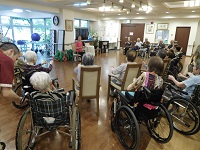 ご入居者様も、外に外出されなくても窓から雨は見えますので「大変だったわね。風とかひいてない?」なんて声をお掛けになってました。