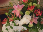 オリエンタル百合のピンクと胡蝶蘭が目立ちます。