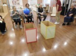 ボールを最初は3つで投げあい、途中で4つに増やし、入居者様も