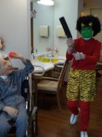 4人(施設長も鬼)の👹がエレベーターで各フロワーに出没。皆様、待ちかねていたように鬼退治を楽しんでいました。皆様の笑顔に降参した鬼は邪気払いされて今年も山に帰って行きました( ´∀` )