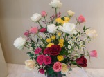 で詰めて楽しまれている方も多いようです。白いバラが引き立つアレンジと