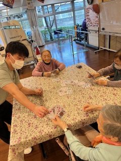 グループに分かれ、ババ抜きや七並べを楽しまれていました(*´ω`*)