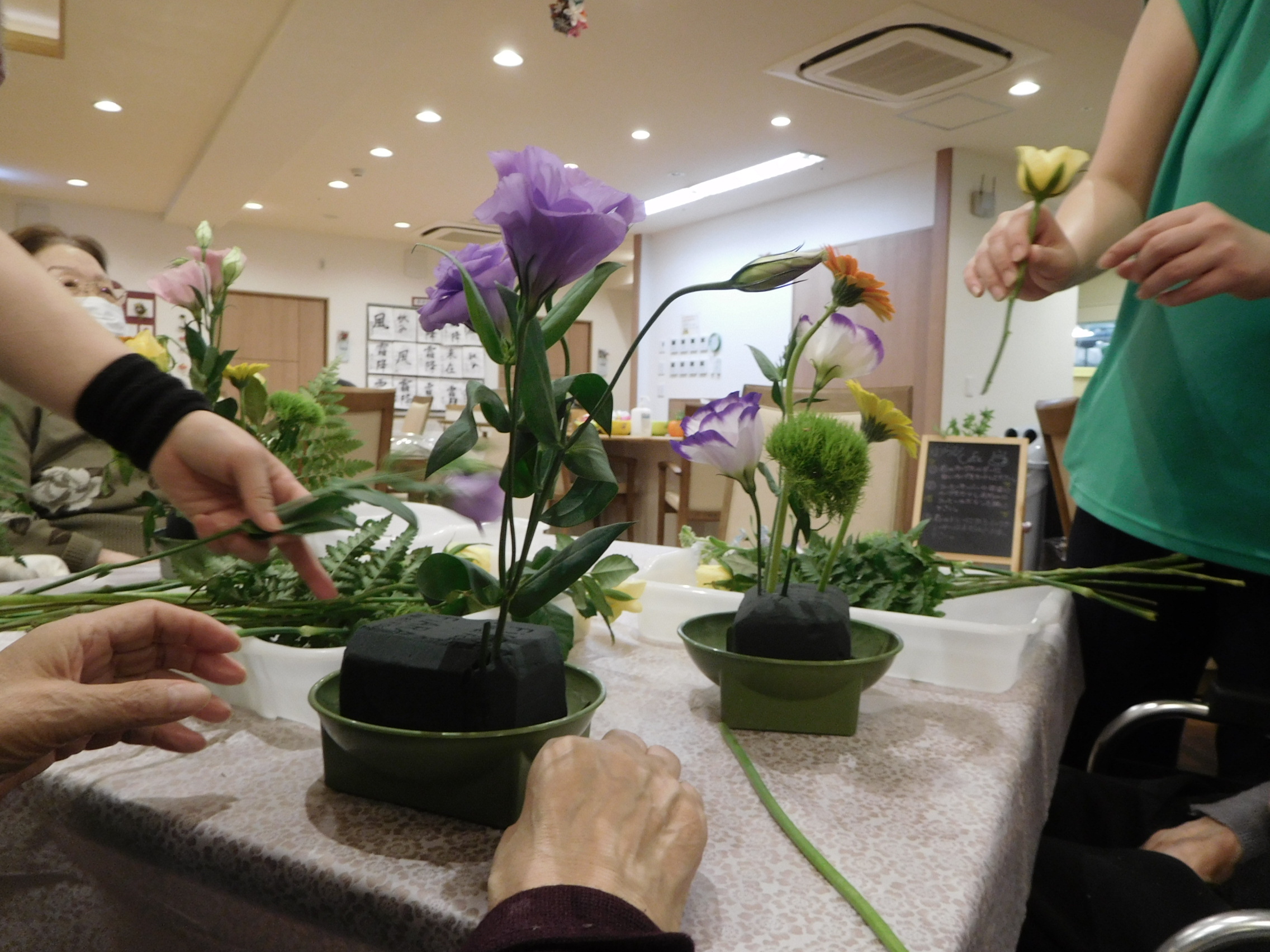 ご希望の入居者様に参加して頂いて、美しい花を飾ってもらいました♪