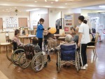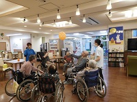 普段でも、入居者様同士や機能訓練士と楽しくお話ししながら取組んで頂いておりますが、それに加えて今日は、窓の外の紅葉を眺めつつ寛いでいらっしゃる様子も伺えました。