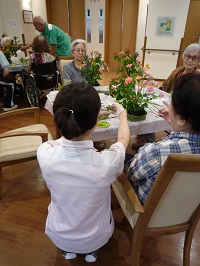 入居者様に花言葉を伝えたところ、みなさん「素敵ねぇ」など楽しそうに話しておりました。