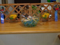 木枠を購入し、蔦や花などを添えた後、風鈴を飾りつけてみました。
