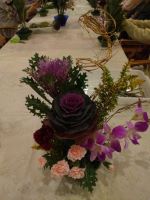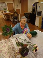 今回のお花は葉ボタンが二種類あり、ゴールドの飾りもついて「お正月」用のアレンジメントです。「お正月にお花がお部屋にあるのは嬉しいわ」と皆様、喜んでいました。素敵なアレンジメントが完成しました。
