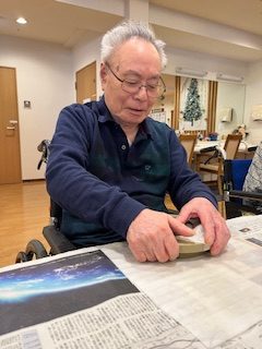 毎年、ご入居者様から預かっている色紙も来年の干支🐍に替えました。ご入居者様ご自身の干支でもあり、一番のお気に入りとか。🐍を形どりしながら「寿」の文字になっていて横にゴールドの字で「白蛇寿神」と書いてあります。お正月の準備も着々と進んでいます。