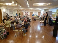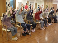 エクササイズが始まると、先生に向けた黄色い声や、楽しく笑顔で体を動かす入居者様の姿がとても素敵でした。