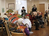 「炭坑節」や「越中おわら風の盆」などの曲に合わせて扇子を使ったエクササイズが始まると、今まで体験したことのないエクササイズに皆さんとても熱心に取り組んでいらっしゃいました。