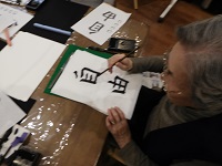 習字は大変人気があり参加される入居者様も多く、「うまく書けないなぁ」「私より上手じゃない」など声が聞こえ、