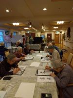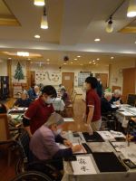 お題は「霧氷」で霧が画数が多くバランスが難しかったようですが皆様、真剣に筆を動かしていました。今年最後の書道ですが「これかな~」と迷いながらお気に入りを一枚提出してくださいました(^^♪ 今年はお疲れ様でした。