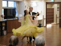 ボランティアの方が華やかな衣装でワルツやタンゴに合わせて素敵なダンスを披露して下さいました。見た目には優雅なソーシャルダンスではありますが、運動量はかなりのもので、1曲を踊りきるのにも大変な体力を消耗するそうです。あの美しさはまさに普段の練習のたまものなんですね(*゚ー゚)