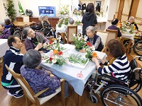 今回は、スイートピーを使用。入居者様から花言葉を聞かれましたが、答えられず…。