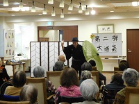 芸はもちろんですが、明るい笑顔で入居者様に語り掛け、場を盛り上げてくれるその姿は若者とはいえ、熟練したプロの技を感じました。すっかり入居者様を虜にした丸一さん❤次回来ていただけるのを皆さん楽しみに待ってます( ´◡` )