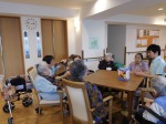 今日から新しい月を迎え、玄関のお花も入れ替えました。GWということでご面会来られる方も多く、皆様足を止めて『 本物 !?』と近づいて香りを確かめて下さっては『 本物~~~(*^_^*)✿ 』とニコニコ顔に。玄関先でみなさん笑顔になって下さっています。そして本日は月初めのお誕生日会・・・・とその前に3階のフロアから元気な歌声が聞こえてきました。ゲームを囲んで何やら楽しい歌の会が始まったご様子(*^_^*) この後のお誕生日会まで、みなさん元気を残しておいてくださいね✿