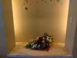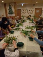 赤の薔薇のお花が真ん中にあり、周りを白でまとめてクリスマス🎄仕上げになっています。オリエンタル百合もまだ蕾ですが開いたら更に豪華になると思います。いつも楽しみにされているご家族様が丁度ご面会に来られ先生とお話していました。気温も低くなってきたので暫く楽しめそうです🎄
