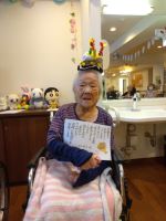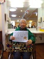 スタッフからのメッセージカードと皆にお祝いの言葉をいただいて喜んでいました。皆様、90代でお若いです。これからもお元気でお過ごしくださいませ(^^♪