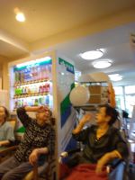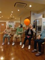 大きい風船と🎃👻の風船と合わせて5つの風船で奮闘していただきました。いつも最初にルールをスタッフが伝えています「風船は手、足、顔、頭、どこで受けてもいいです。嫌でも顔や頭で受けてしまいます( ´艸`)ただ、自分の頭を超えた風船は諦めてください。椅子や車椅子ごと後ろに倒れる可能性があります。諦めも肝心」皆様、ルールを守ってくださり安全に楽しまれています。残念ながら今日は風船は一つも割れずでした(^^♪