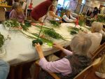 赤のグラジオラスが目立って皆様、メインのお花として活けていらっしゃいました。男性の方も参加され活けた後にお花を眺めにっこりと😊微笑んでいました。今回も素敵なアレンジメントが完成しました(^^♪