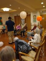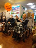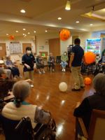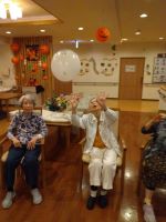 ハロウィン🎃👻の風船で楽しんでいただきました。開始から間もなく白い風船が割れて😲のご入居者様!その後には苦笑いしていました( ´艸`)今日も白熱した風船バレーでした。