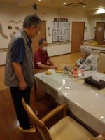 もうすぐ101歳を迎えられるK様は「有難う」と喜ばれていました。Y様は握手をしてお祝いしていました。皆に囲まれてお祝いされるのは嬉しいですね!