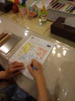 女性の方々はお花の絵を綺麗に塗っていました。男性は動物の絵を塗り、皆様、集中されていました。