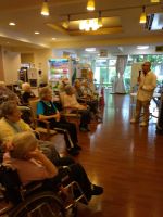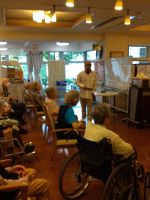 体重計が新しくなりました。車椅子やシルバーカーのまま量るのに不思議そうなお顔の皆様、後から、車椅子やシルバーカーの重さを引くんですよとお伝えすると「そうなんだ、便利だね」と感心されていました。今回も大きな変動がなく安心しました。