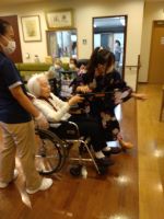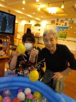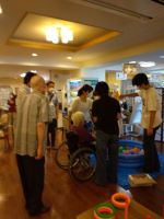 ヨーヨー釣り、射的、輪投げを楽しまれ、フランクフルト、アイスを味わいながら皆様と楽しんでいただきました。ご家族様も一緒に楽しんでくださり、いい思い出にもなりました。担当スタッフも準備から頑張っていて、今日の皆様の笑顔で達成感を感じられたようです。最後、担当リーダーの松山千春の「空と大地の中で」はまさに見た目、歌声そっくりで皆様もうっとりでした。