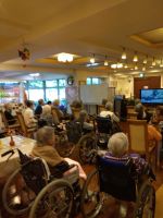 「カラオケだけは絶対に参加するわ」という方が多く、いつも参加率の高いアクティビティです。途中で入浴に行かれる方もいらっしゃり、入浴担当も申し訳なさそうにお声かけしています( ´艸`)今日も皆様、楽しまれていました(^^♪