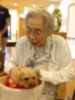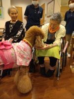 ご入居様に挨拶やふれあいながら色々な芸も披露してくれて皆様、凄く喜んでいました。おやつやミルク飲みも礼儀正しくご入居者から受けてご入居者様もスタッフも可愛いむつみちゃん、みみちゃんにメロメロでした。とても癒されて楽しい時間を過ごす事ができました🐶((´∀`*))