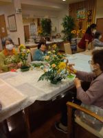 八重咲向日葵🌻と姫向日葵の二種類の向日葵があり、全体的にビタミンカラーで統一されていています。挿している皆様に元気パワーを送っているようでした。今日も、沢山の素敵なアレンジメントが完成しました。