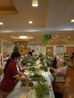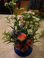 グラデーションのリンドウが綺麗でした。ボリュームもあり、全部挿さずに数本は花瓶用にと分けた方もいらっしゃいました。今回も素敵なアレンジメントが完成しました。