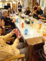 最初は「さ」のつく言葉を出していただきました。「さくら」「さくらんぼ」が多かったですが沢山出て、ホワイトボードに描き切れない位でした。お隣の方と相談したりして、脳を活性化💡できたようです。